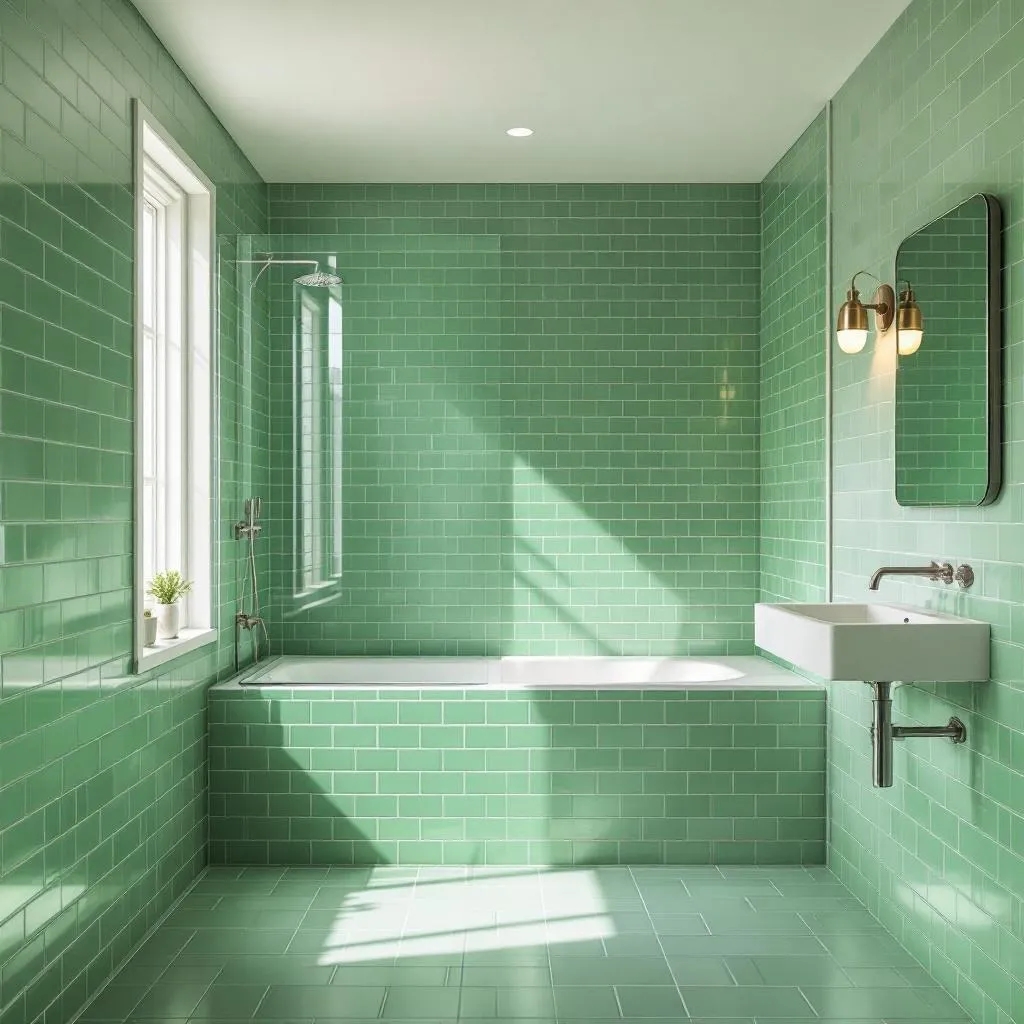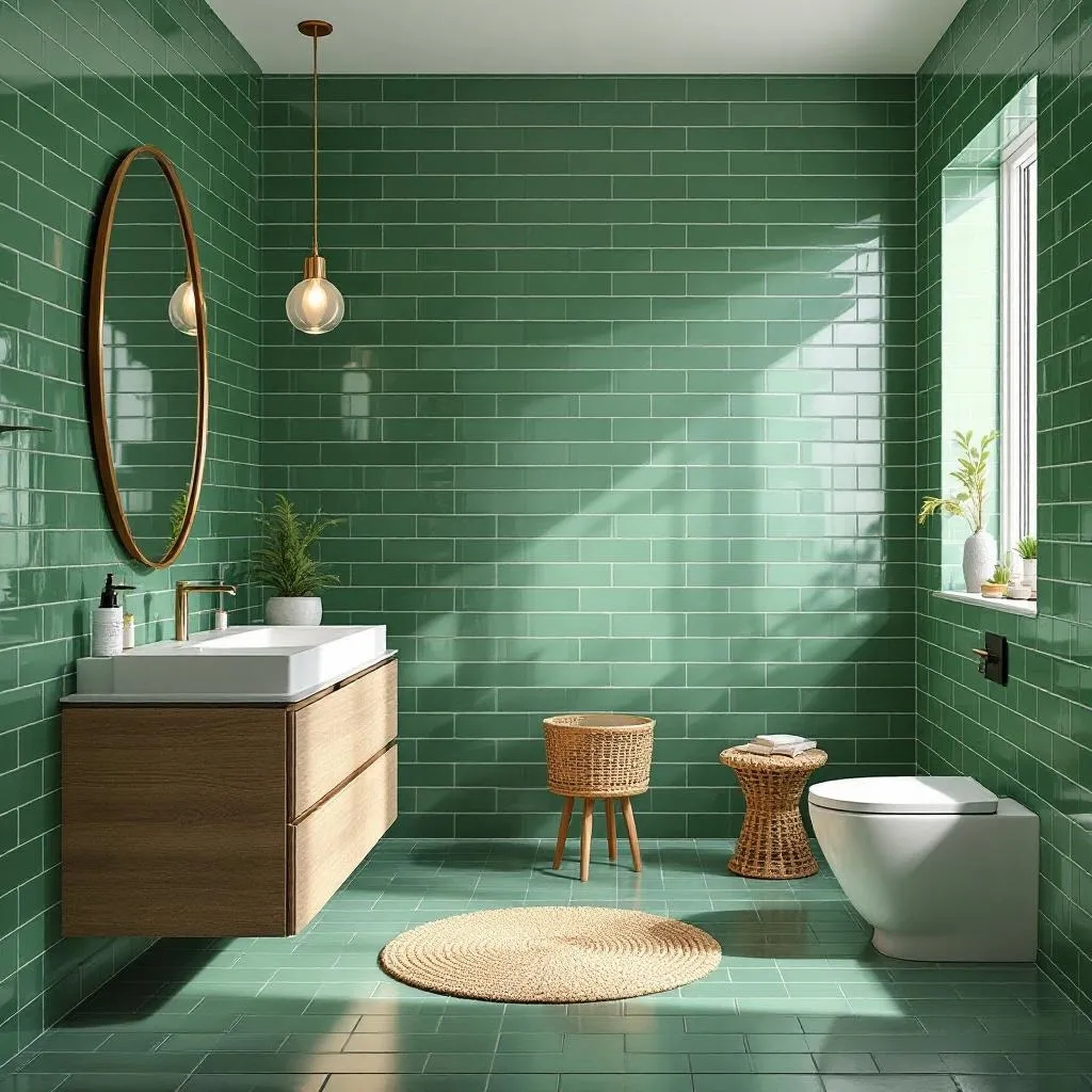 Contemporary green bathroom with glass shower in Boca Raton, designed by Serac.